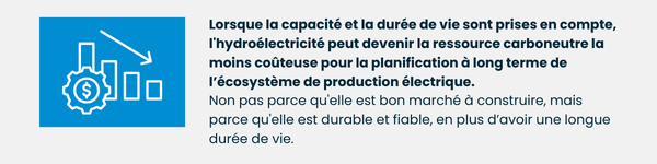 Cette caractéristique du système n’est pas reflétée dans les calculs simplifiés de comparaisons de coûts, mais elle joue un rôle essentiel au maintien d’un réseau électrique stable et abordable. À bien des égards, l’hydroélectricité s’apparente moins à une technologie unique qu’à une infrastructure de base. Sa nature se rapproche davantage des lignes de transport ou des réservoirs que des projets de production individuels. En ce sens, elle incarne la pierre d’assise du système plutôt qu’un élément en compétition avec les autres sources d’énergie.